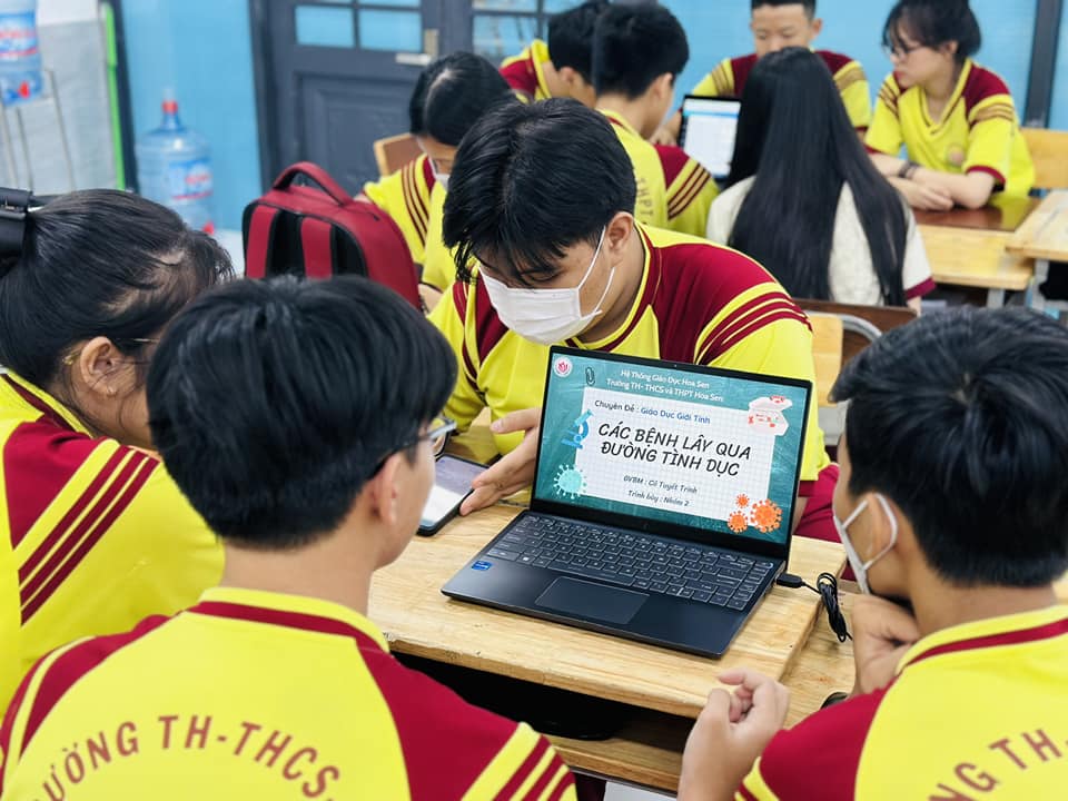 Trong tiết học, học sinh không chỉ được tiếp cận với kiến thức lý thuyết mà còn được rèn luyện kỹ năng làm việc nhóm, điều này đặc biệt quan trọng trong quá trình học tập và sinh hoạt xã hội. Bên cạnh đó, các em học sinh đầu cấp còn được làm quen với thiết kế Canva, một công cụ hữu ích hỗ trợ cho bài thuyết trình của mình, từ đó nâng cao khả năng trình bày và giao tiếp.